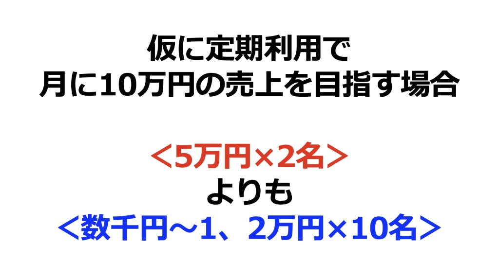 仮に定期利用で月に10万円の売上を目指す場合、次の2つのパターンではどちらのほうがいいでしょうか?
