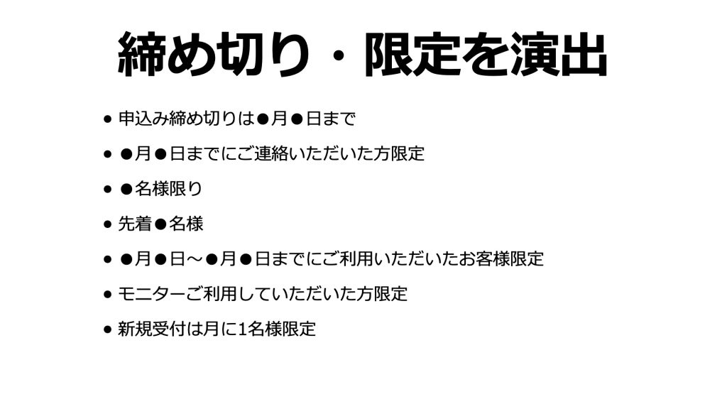 具体的な締切・限定を演出する方法