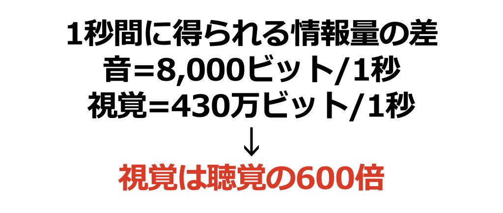 ただずっと話し続けるより、視覚で入る情報があると600倍も情報を届けることができます。