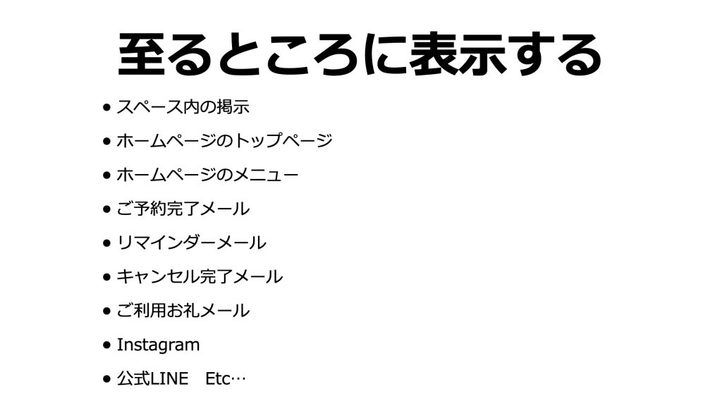 ご案内がいたるところで目につくようにするというポイントでご紹介します。