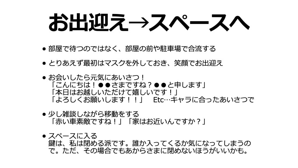 - しっかりとスペースの設備・備品・サービス内容を理解する