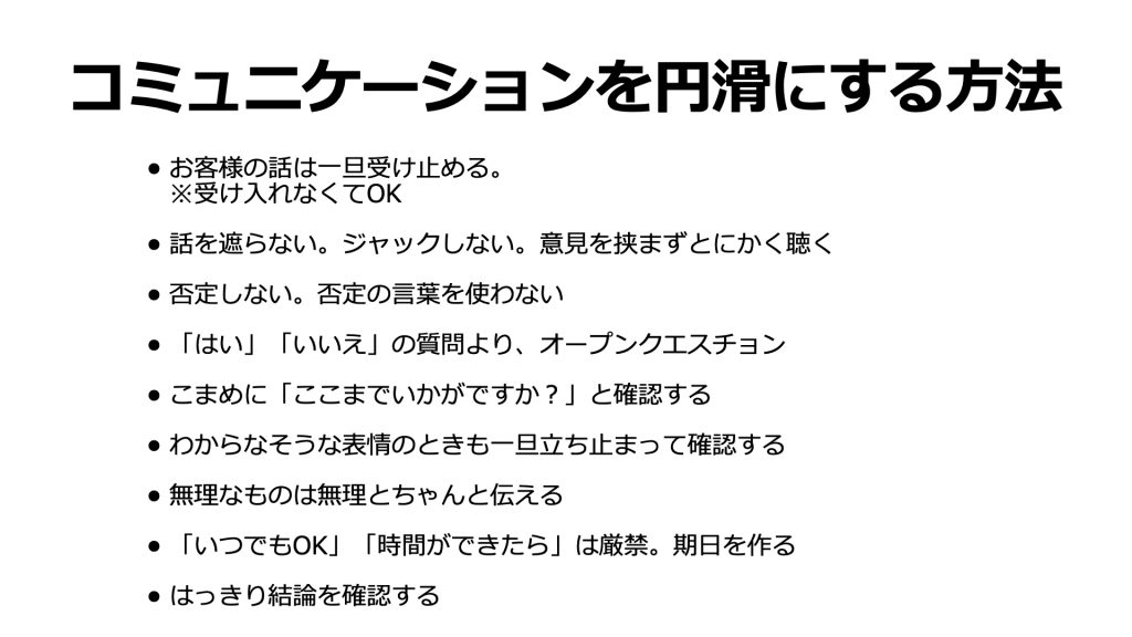 - お客様の話は一旦受け止める(受け入れなくてOK)