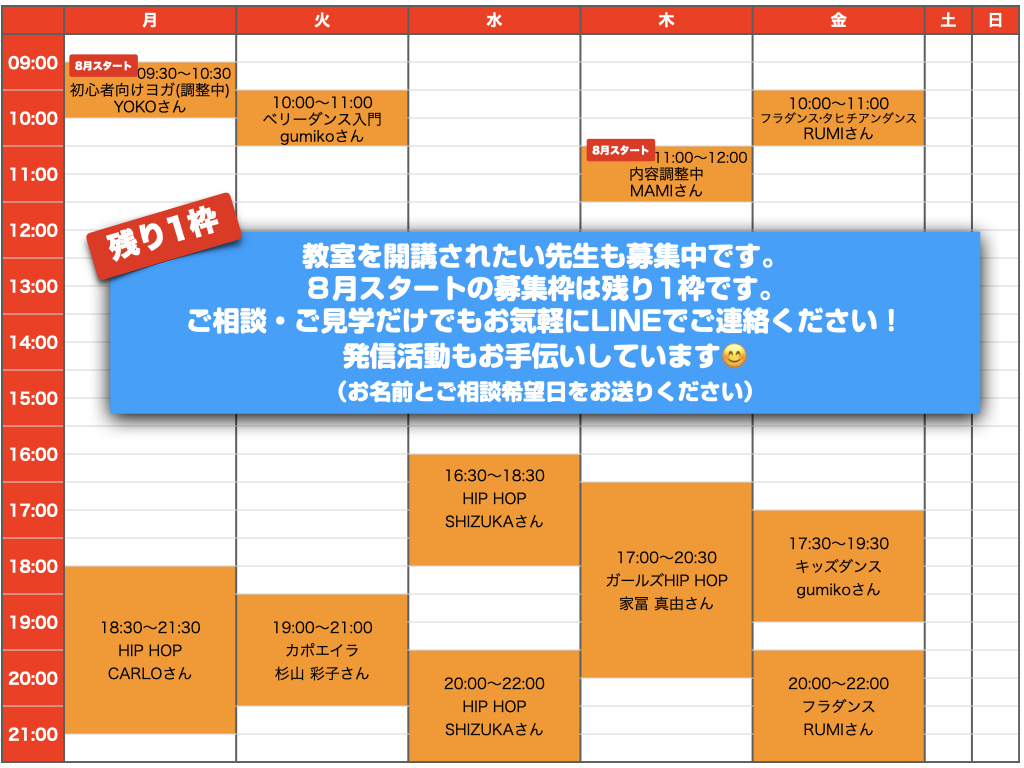 8月からはさらに2つの教室が始まる予定です。ぜひ楽しみにしていてください!