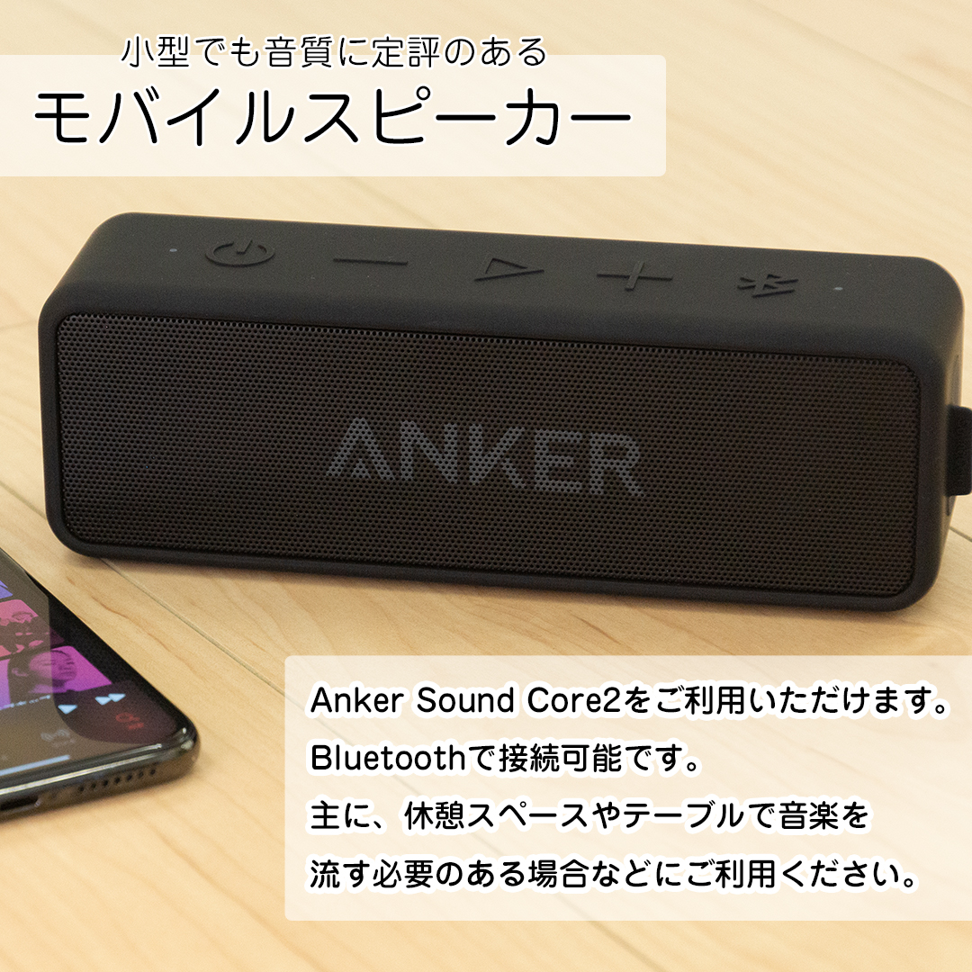 オープン時から設置していた「Anker Sound Core2」という小型のBluetoothスピーカーですが、