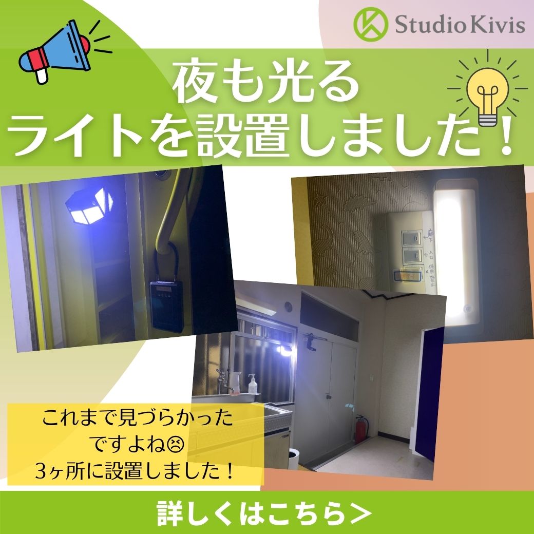 スタジオを夜にご利用いただく際、暗いために鍵の開け閉めが大変でしたよね。。