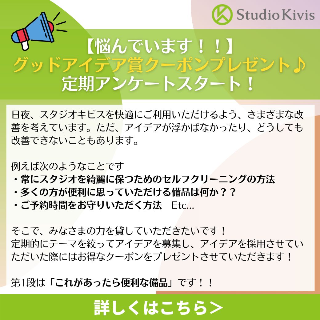 【悩んでいます!】スタジオ改善 定期アンケートをスタート!