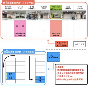 これまではスタジオの横のお店前もご利用いただいておりましたが、営業時間の変更などにより、ご利用いただけなくなりました。