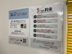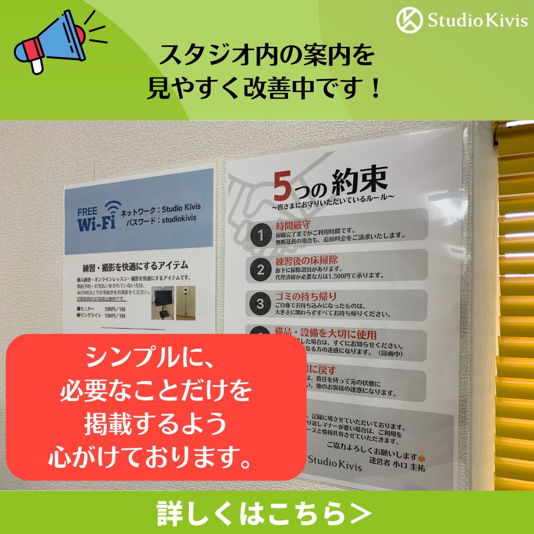 現在、スタジオ内にあるご案内の改善を進めています。