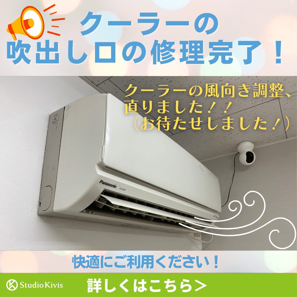 こんにちは!いつもスタジオキビスをご利用いただきまして誠にありがとうございます。