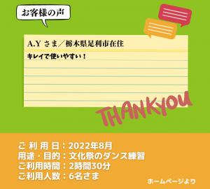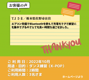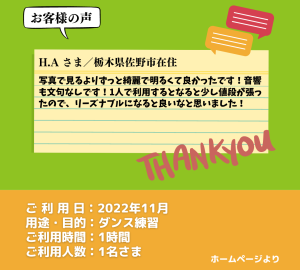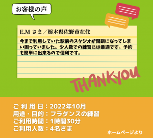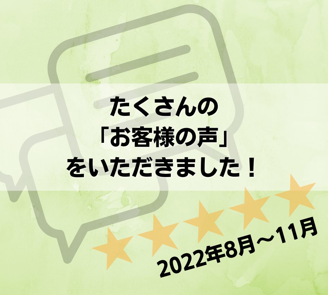8月後半〜11月にいただいたお客様の声を掲載させていただきます!
