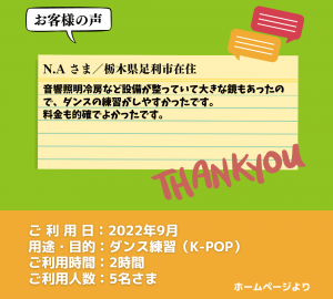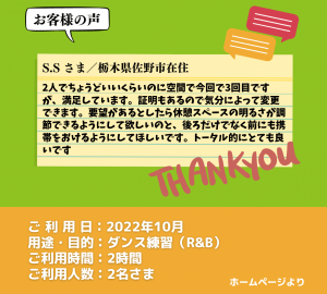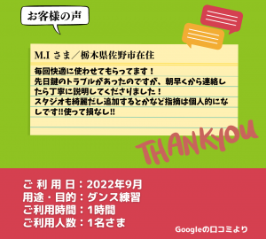 スタジオでは、ご利用後にアンケートのご協力をお願いしております!