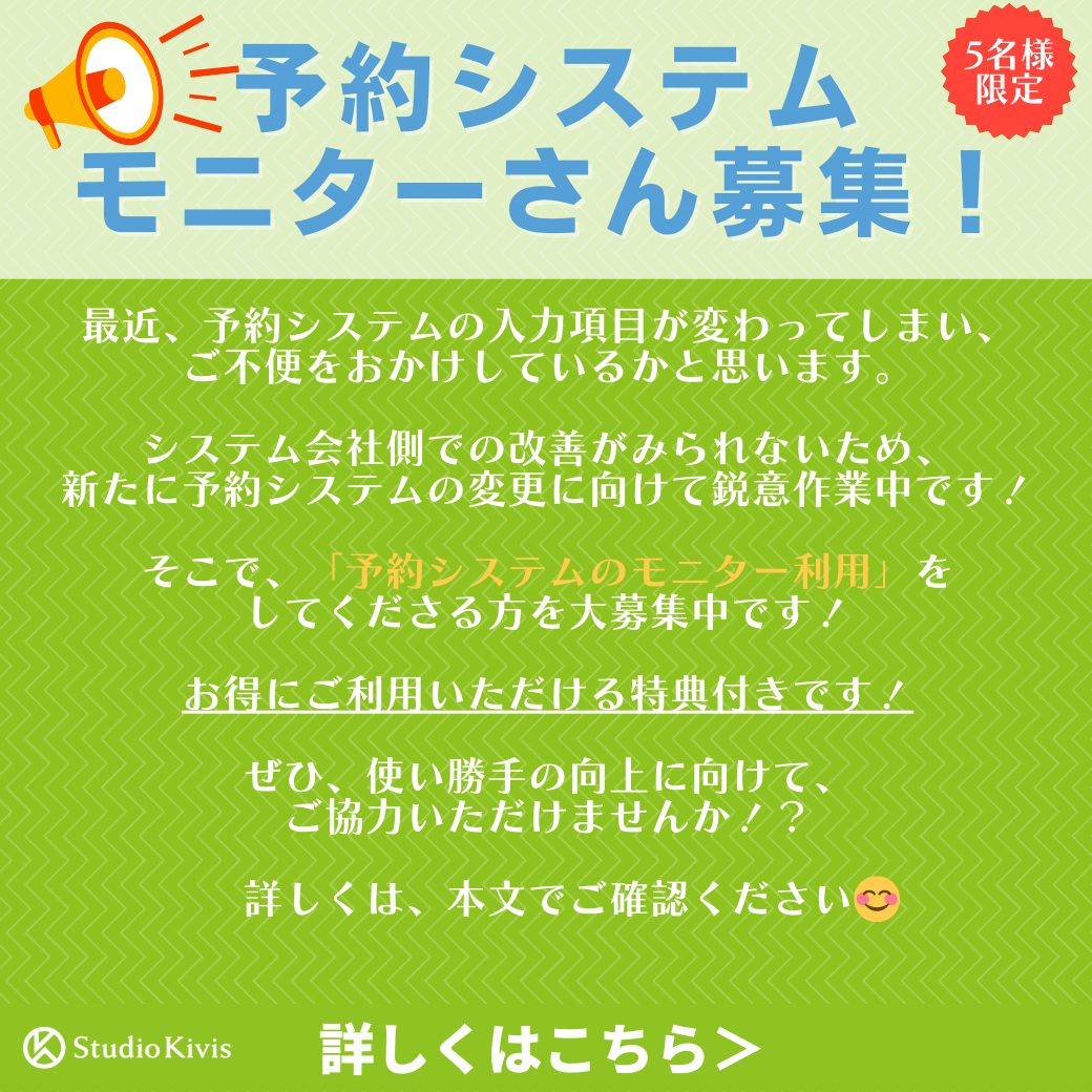 【モニターさん募集!!】予約システムの変更について