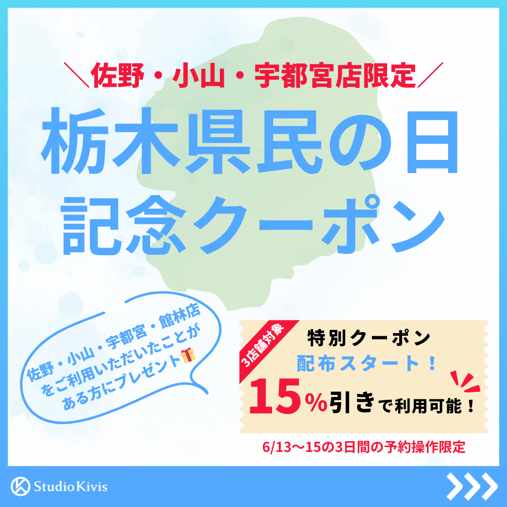 ・対象店舗:スタジオキビス 佐野店・小山店・宇都宮店
