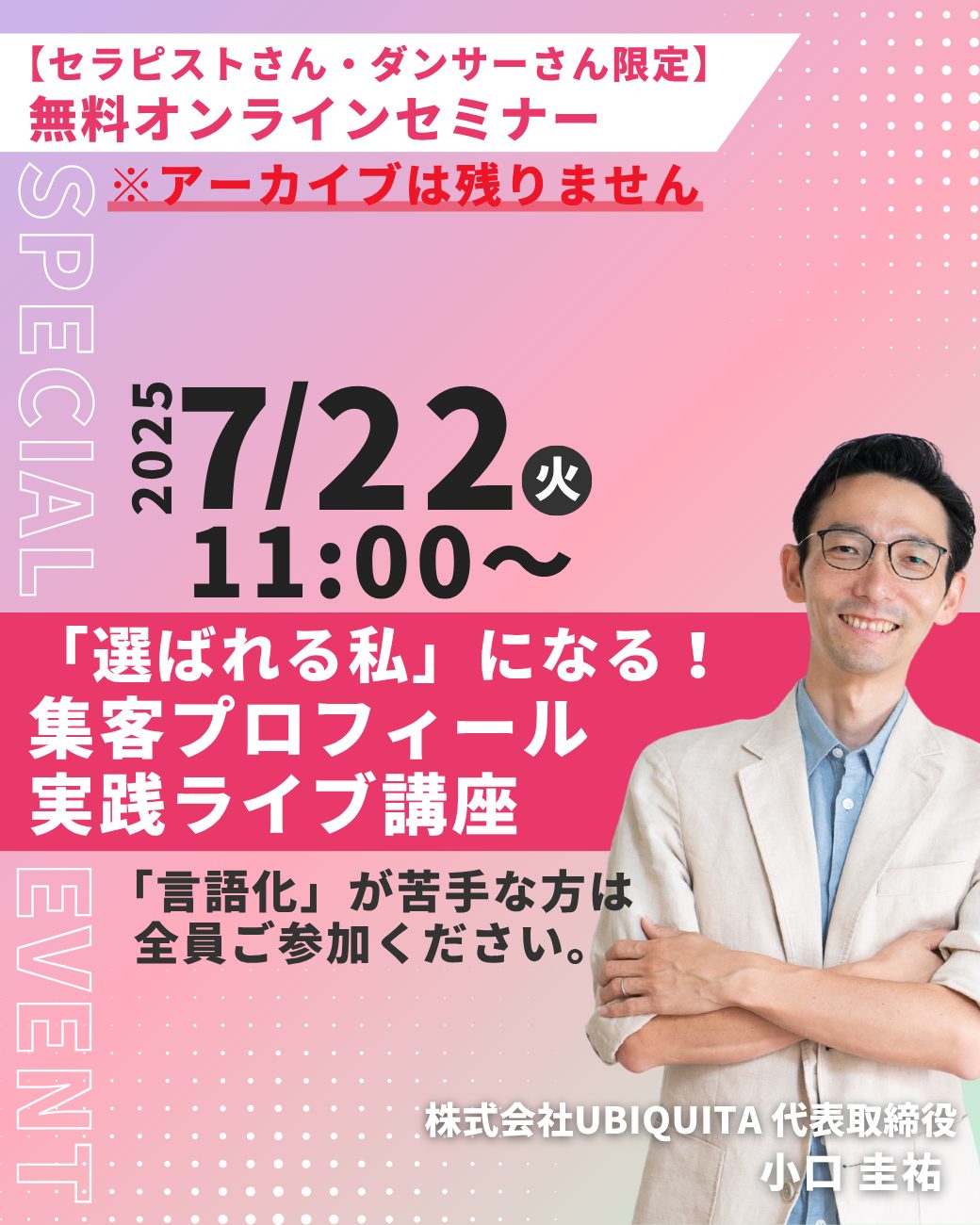 【セラピストさん・ダンサーさん限定】「選ばれる私」になる!集客プロフィール実践ライブ講座