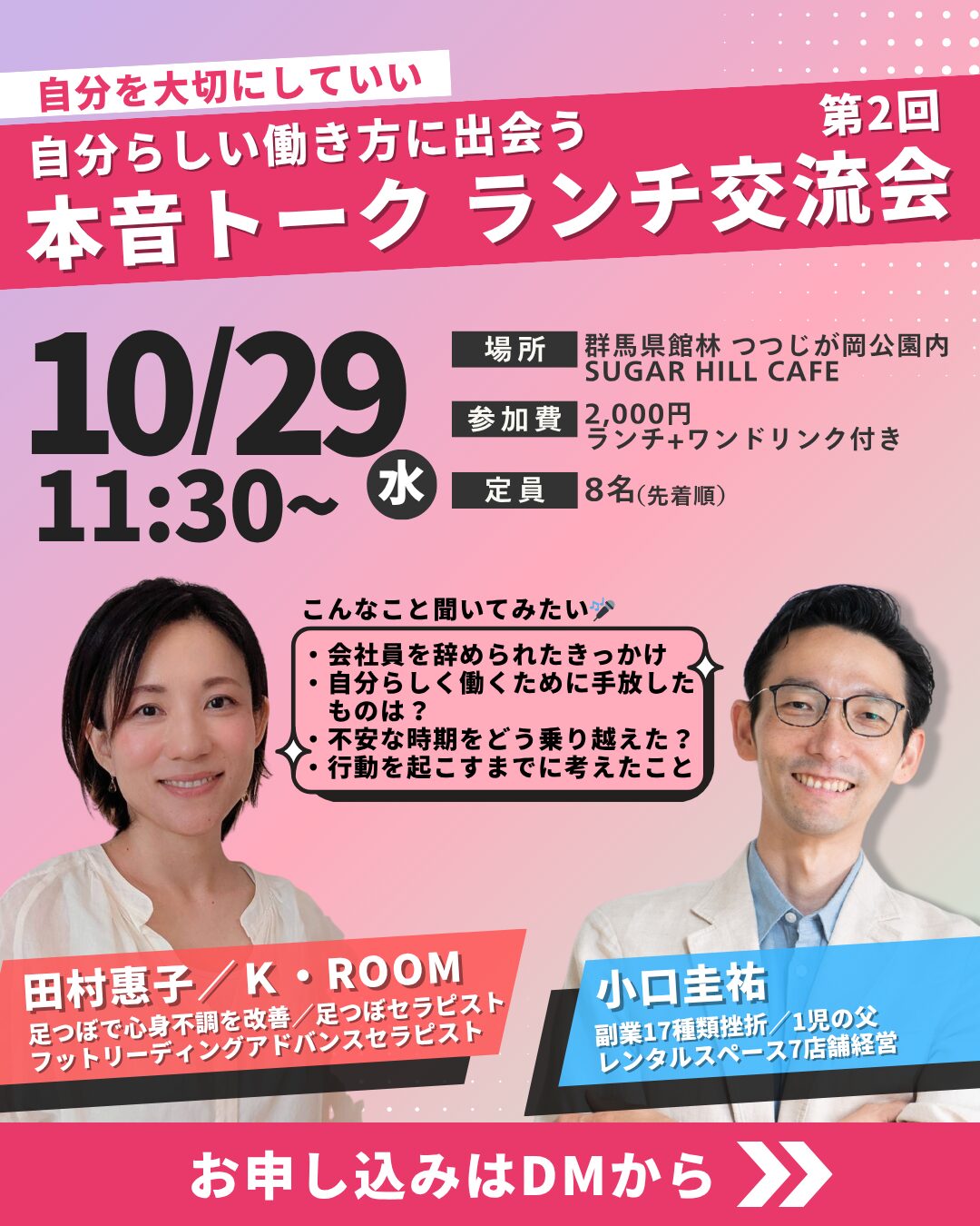 【8名限定】自分らしい働き方に出会う!「第2回 本音トーク ランチ交流会」のお知らせ✨