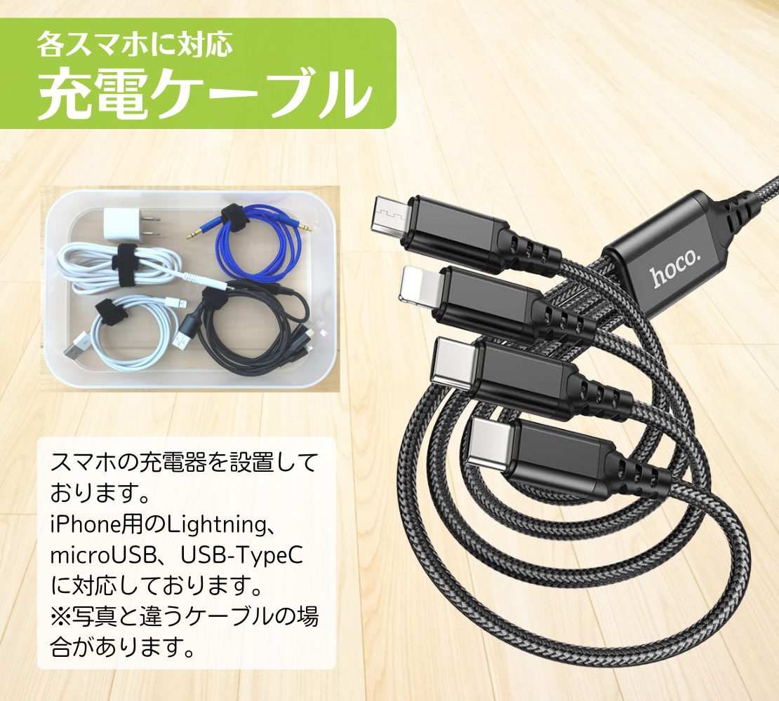 • スマホ用充電ケーブル(USB-C/Lightning/micro-USB)