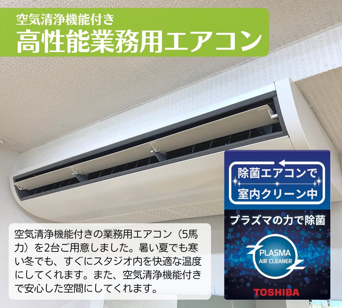 スタジオ内は土足厳禁です。室内シューズ、靴下、スリッパでご利用ください。