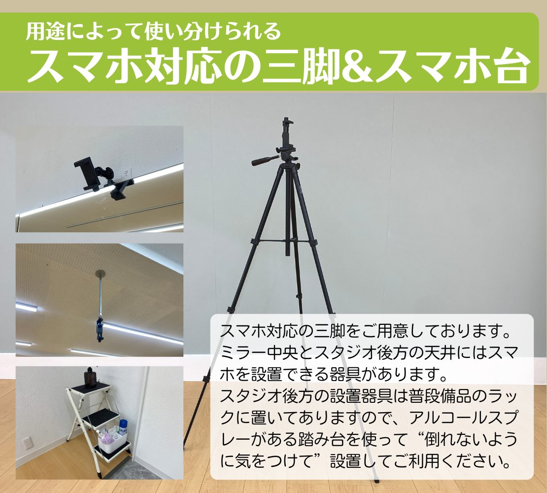 また、ダンス練習だけでなく、写真・動画の撮影やワークショップ、勉強会やオンラインレッスンの受講など、様々な用途でご利用ください。