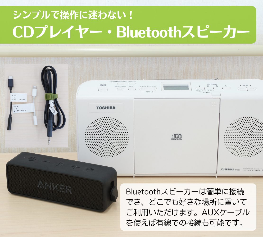 また、Bluetoothスピーカーも完備!簡単に接続でき、どこでも好きな場所に置いてご利用いただけます。